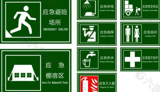 应急避难场所中的应急标志,是在关键时刻快速正确引导避难人员进行避难的指示性标志物。